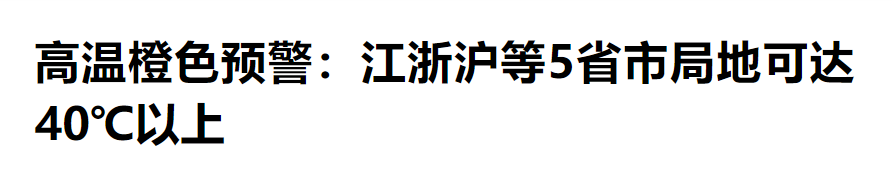 中央氣象臺(tái)7月15日06時(shí)繼續(xù)發(fā)布高溫橙色預(yù)警:預(yù)計(jì)7月15日白天,陜西 南部、華北東部、黃淮西部、西南地區(qū)東部、江漢、江淮、江南、華南大部等地有 35℃以上高溫天氣,其中,陜西南部、河南南部、安徽中南部、江蘇南部、上海、湖 北大部、湖南中北部、江西、浙江、福建大部、四川東部、重慶大部、貴州東北部等 地的部分地區(qū)最高氣溫37~39℃,陜西南部、四川東部、重慶沿江地區(qū)、浙江中部和 南部等地局地可達(dá)40℃以上。 |